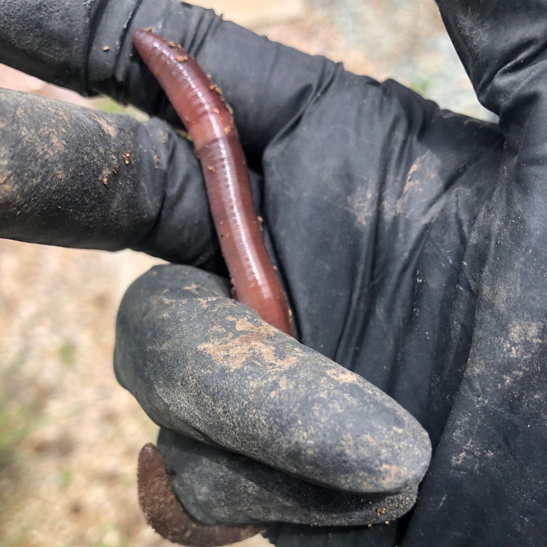 So, what about jumping worms? One of the clearest things about these invasives is that we really don’t know or understand much about them. We know that these are recent arrivals, although it’s not entirely clear when or how they were brought in. Regardless, they are spreading quite quickly throughout the country as a silent wave. These worms are thought to have been present in North Carolina since the 1970’s, with several species of jumping worms (including Amynthas agrestis, Amynthas tokioensis, and Metophire hilgendorfi) which can occur independently or all together. You can identify these worms by their large size, aggressive movements – described as “jumping” or “snake like”, the (otherwise quite lovely) iridescent sheen, and when they are adults, they will have a prominent milky-white saddle or band that completely encircles and is flush with their body- this saddle will also be much closer to one end of the worm. If you find them, you will also find tell-tale “coffee ground” consistency of the soil, and it is likely you will not just find one. They can occur at astonishing densities.