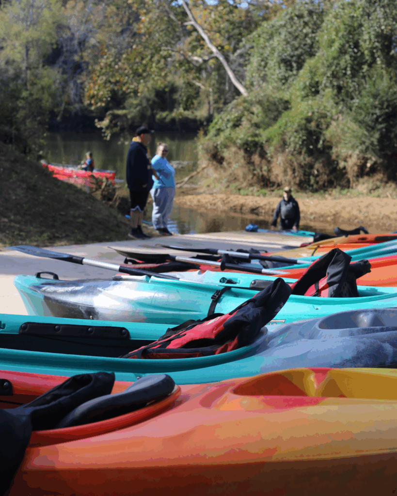 The Deep River, named for its steep banks rather than the depth of its water, flows 125 miles from its headwaters near High Point and meets the Haw River near Moncure to form the Cape Fear. The stretch dividing Chatham and Lee counties is a favorite paddling spot, with convenient public access and easy daytrip options. This mostly calm waterway, accented with gentle Class I rapids, welcomes both seasoned paddlers and beginners.