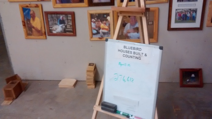 to Frank, they can be nailed together by their expert volunteers in 22 seconds! Most of these boxes are distributed throughout North Carolina through a partnership with the NC State Employees Credit Union (SECU), who sells the boxes in their branches to their members at cost. Just 4 days after my visit with Frank, SECU celebrated their 200,000 bluebird box being sold. That’s an amazing feat for sure.