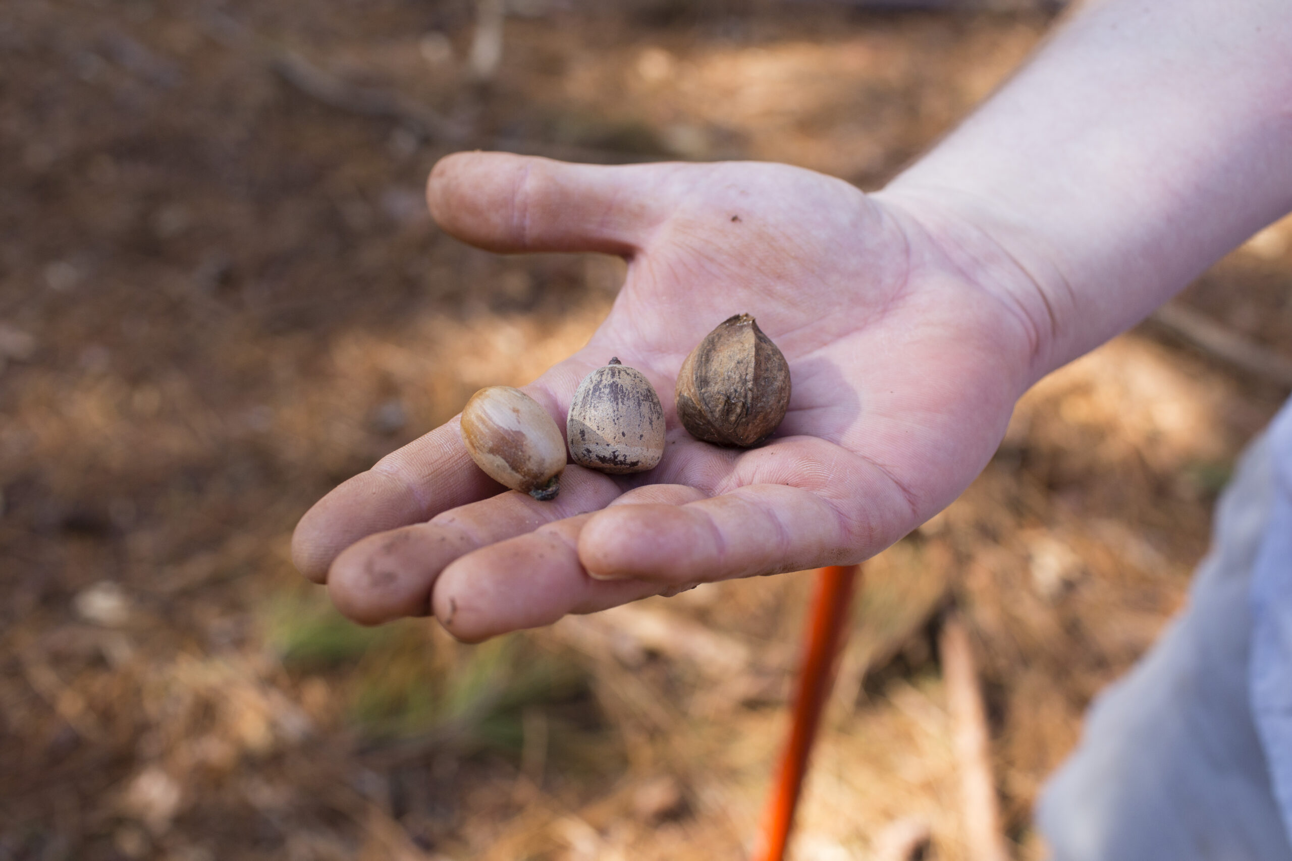 Once the seeds germinate, it will be up to TLC to use the right management tools to encourage the continued growth of the hardwood seedlings. One such management tool is prescribed fire—oak trees are adapted to fire, and once established, will sprout after a burn, while many other species, such as loblolly pine, will not.