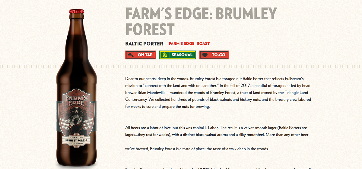 Our friends at Fullsteam have brewed another batch of their popular Brumley Forest Baltic Porter. It's available on tap and in bottles in their taproom in downtown Durham and also available in bottles at select retailers in the Triangle. $1 from every bottle sold will benefit Triangle Land Conservancy directly. Fullsteam describes the beer as "a taste of place: the taste of a walk deep in the woods." We couldn't agree more.