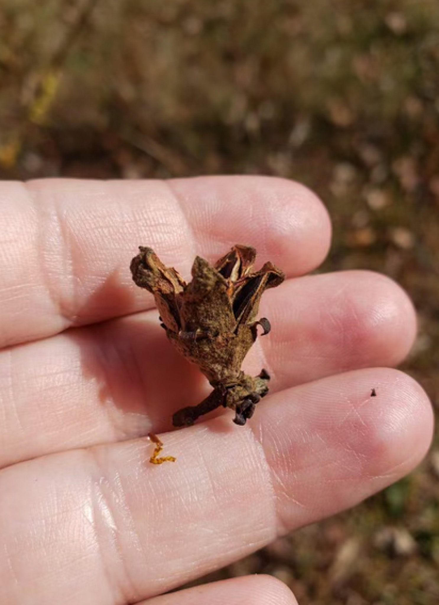 Lastly, if you are out in the woods and come across a clump of witch hazel, take a close look at the branches, and you might find some spiny growths in addition to the woody fruits and the flowers. Spiny witch hazel fall aphids lay their eggs in dormant flower buds, which causes the plant to create the galls.