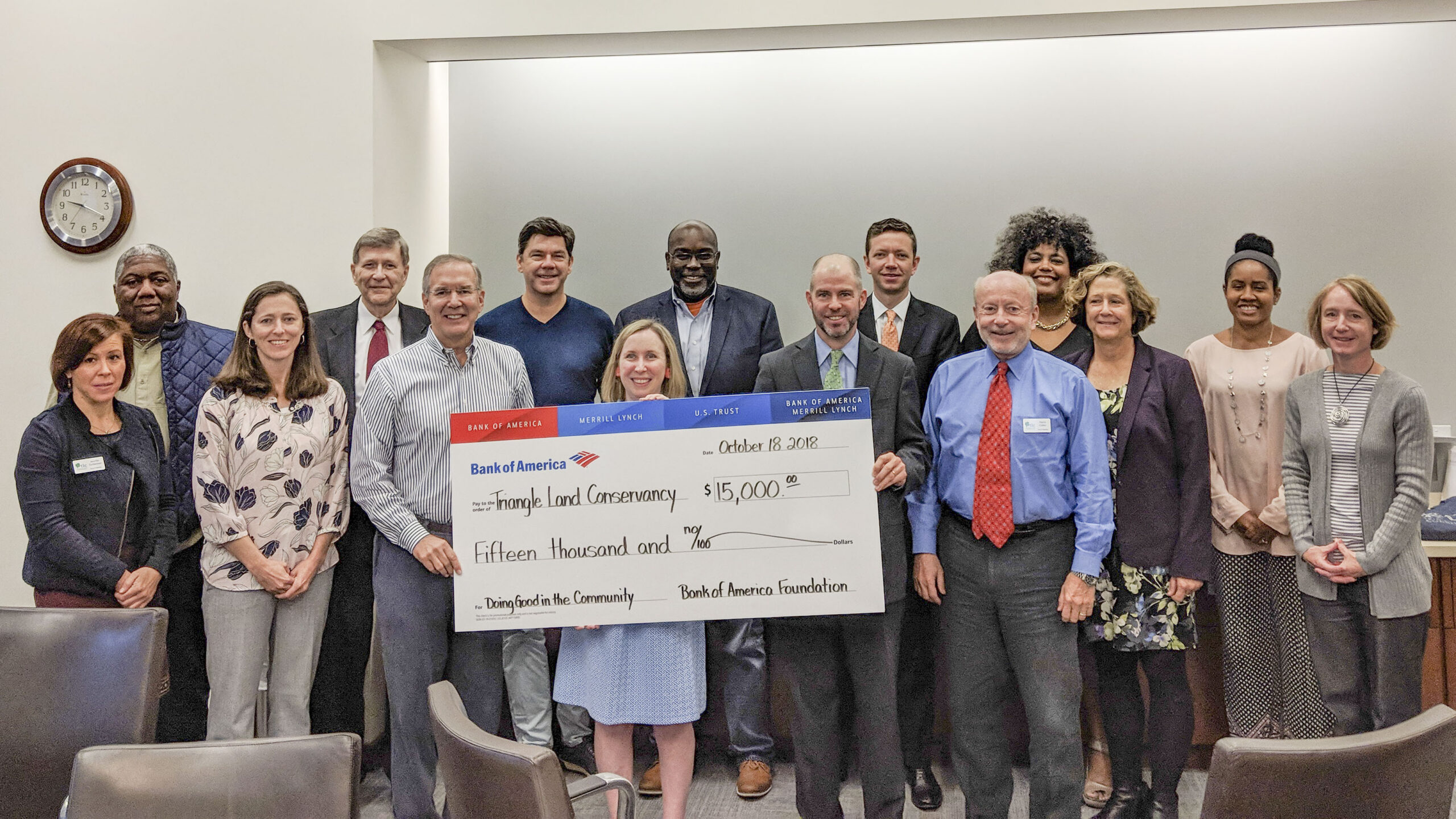 Triangle Land Conservancy (TLC) has received a $15,000 grant from the Bank of America Foundation that will support TLC’s work to double the pace of conservation in our region by helping to educate more people through its popular Wild Ideas series on the importance of land conservation to provide their clean drinking water, locally grown food, and good health.