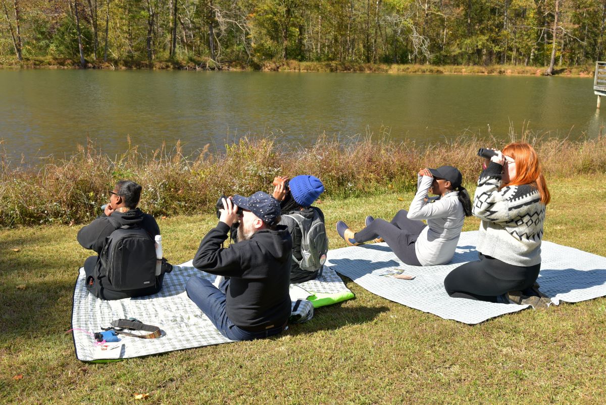Keynote speaker, Earl B. Hunter, Jr., founder of Black Folks Camp Too, challenged attendees at the February Wild I.D.E.A.s event to introduce and invite more diverse people into nature and the outdoor community. TLC's entire team heard that challenge, and our Education and Outreach team took steps to bring life to a Wild Ideas specifically focused on experiencing the outdoors together. A major part of making this happen was reaching out to groups in the Triangle such as BLK Hiking Club RDU, Feminist Bird Club, and NC Adapted Sports who are already working to create community, safe spaces, and opportunities for people of all backgrounds and abilities to enjoy outdoor spaces. In addition to the diversity of partner groups invited, our team also focused on ensuring a diversity of activities and experiences featured throughout the day, which included a Spanish-language hike, test riding adaptive handcycles, and fishing at Brumley's large pond. For several attendees, this was the first time they had ever fished, birdwatched, or even visited Brumley!