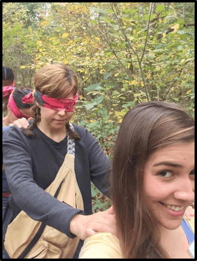 First, we Awaken Enthusiasm through a sensory activity. This can be accomplished by using observational skills to tune in to the moment, or by depriving participants of their dominant sense of sight to allow them to tune in to their other senses and explore their environment in a novel way. Often, the sensory activities we use with adults were originally designed for children, which really helps break through any barriers or hesitation that women may be hanging on to.